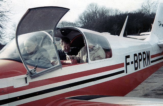 Le 14 juin 1990, je convoyais le DR 315, F-BPRM, depuis Beauvais, premier vol d'une durée de 00:54 sous les couleurs de l'Aéro-Club Des Navigants. Quatre mois plus tôt, cet appareil acheté par Anne Bagot et Michel Wiscart en piteux état, était mis gracieusement à la disposition de l'ACDN naissant. Michel le prenait en compte à Beauvais dans l'atelier de Mr Pataille. Pendant trois mois il allait le remettre à neuf, presque seul, moteur et cellule : chapeau !